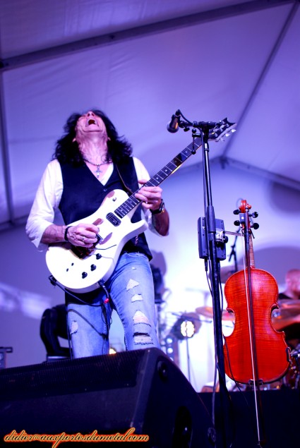 J'avais déjà vu Pat McManus deux fois, à Peymeinade une première fois où pendant deux heures il m'avait scotché puis rebelote au Moods à Monaco dans une ambiance plus feutrée. Dans les deux cas, la setlist était assez blues rock. Mais ça c'était avant. Car le Pat McManus 2014 a durci le ton. Il est toujours anormalement brun pour son âge, très souriant, est impressionnant de technique guitaristique. Mais il sonne ce soir bien plus hard rock que blues rock. Je pense qu'il a voulu sonner plus hard rock pour être dans le ton du festival. Il n'utilisera par exemple qu'une fois son célèbre violon sur un morceau des Mama's Boys (son groupe d'antan, pour les ignares). Plusieurs fois dans son set il rend hommage à des guitaristes de blues irlandais: Roy Buchannan, Gary Moore, Rory Galagher dont il reprend des morceaux. Il a aussi écrit un morceau à paraître, Belfast Boy, en hommage à Gary. Il joue aussi son célèbre Juggernaut, qui permet de voir ce qu'est vraiment le jeu en tapping, dans une ambiance de musique folklorique irlandaise. Ses deux musiciens disparaissent le temps d'une bière (Guiness ?) pendant que Pat nous joue seul à l'acoustique The Return Of The G Man, toujours aussi bon. En parlant de Guiness, on lui passe à un moment un verre de coca, et quelqu'un l'apostrophe avec un bon accent irlandais, en lui criant que c'est de la Guiness. Ca le fait rire. Au final il rappelle sur scène Renaud Hantson, alors à son treizième pastis, sûrement, pour nous chanter un dernier morceau de Mama's Boys. C'est plutôt sympa. Il termine par deux reprises (dont un excellent Oh Well de Fleetwood Mac époque Peter Green), un peu étonnant alors qu'il n'a pas joué plusieurs de ses pièces maîtresses. Dans les dernières minutes, tous les musiciens précédents (sauf Adam Bomb et sa clique) envahissent la scène, accompagné de Marco l'organisateur du festoche qui remercie tout le monde.