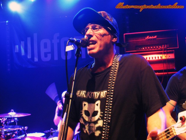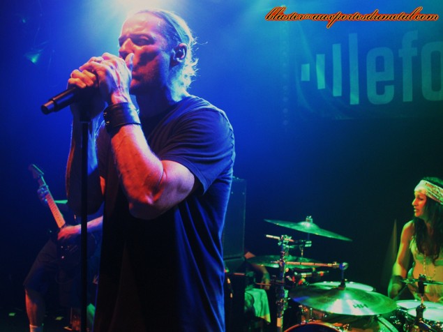 Il est plus de vingt-deux heures quand le moment tant attendu (depuis plus de quinze ans !) arrive enfin, ça y est, les Ugly Kid Joe sont de retour ! Mais est-ce vraiment bien le groupe qui investit la scène du Forum ? J'ai un moment d'hésitation... Derrière la batterie s'installe une femme et non Shannon Larkin. Bizarre... Et puis arrive un guitariste, mais je ne reconnais pas Dave Fortman... Ah par contre, il s'agit bien de Cordell Crockett à la basse, le doute n'est donc plus permis. Klaus Eichstadt les rejoint et tout ce beau monde attaque le set par l'intro instrumentale de l'album Menace To Sobriety. Le son est meilleur que pour Puddle Of Mudd mais malheureusement, pour l'instant, la basse est trop en avant et se fait plus entendre que les guitares. Une fois cette petite mise en jambes achevée, Whitfield Crane arrive et c'est parti pour un V.I.P. revigorant ! L'entrée en matière est donc heavy et ce n'est certainement pas God, balancée dans la foulée, qui viendra contredire ce constat. Le public est chaud, le son s'améliore, Yael frappe ses fûts avec force et conviction, le groupe est souriant et l'ambiance bien détendue, Whitfield Crane est très sympathique et ne manque pas de jouer avec le public... tout se passe plutôt bien, et après un Dialogue grungy (assez raccord avec le groupe de première partie pour le coup) déboulent enfin les tubes du premier album, le fameux America's Least Wanted. C'est à Neighbor que revient le privilège de nous ramener vingt ans en arrière pour la première fois de la soirée... et c'est bon ! Mieux que ça, même. Histoire de battre le fer pendant qu'il est chaud, les Californiens enchaînent avec un Panhandlin' Prince très convaincant. Si les fans veulent entendre des hits de la vieille époque, ils ne vont pas être déçus car les Ugly Kid Joe joueront pas moins de sept morceaux issus de leur premier album ce soir. Voilà un groupe qui sait faire plaisir à ses supporters... et qui se fait visiblement plaisir aussi.