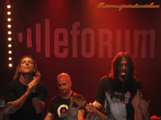Ugly Kid Joe ! Souvenirs, souvenirs... Eté 1992, je m'achète le premier album des Californiens, le fameux America's Least Wanted, un petit brulôt de hard rock qui sait se faire heavy quand il le faut et contient une quantité non négligeable de hits réjouissants. Trois ans plus tard sort le percutant Menace To Sobriety, plus heavy, plus agressif... redoutable. Malgré d'évidentes qualités, cet album marche moins bien. Avec leur troisième et dernier essai, le pas franchement mémorable Motel California, nos vilains Américains préférés loupent le coche et finissent par se séparer. Dommage... Sauf qu'aujourd'hui, quinze ans après leur split, les voici de retour avec un EP intitulé Stairway To Hell (toujours ce don de la référence détournée) et une petite série de dates européennes histoire de fêter dignement leur reformation. Un tel événement ne saurait se manquer... surtout pas quand le concert a lieu dans la petite salle bien sympathique du Forum à Vauréal qui, décidément, a une programmation metal de plus en plus intéressante ces derniers temps. Cette soirée du 13 juin fut l'occasion pour moi de voir pour la première fois sur scène un groupe que j'ai commencé à écouter il y a vingt ans de cela. C'est donc muni d'une certaine excitation doublée d'une grande curiosité que je me pointai à l'entrée du Forum... Mais d'abord, il faut passer par les premières parties. Sauf que Dear Superstar, suite à des galères dont les tenants et aboutissants ne seront pas révélés, a décommandé et que seul Puddle Of Mudd, groupe de rock/grunge US auquel je ne me suis jamais intéressé, reste pour ouvrir les hostilités. Il ne s'agit d'ailleurs pas vraiment d'une première partie, on nous a plutôt présenté la chose comme une co-tête d'affiche. Soit, je suis donc prêt à découvrir Puddle Of Mudd. Pas évident de faire l'éloge de ce groupe tant leur style musical n'est pas franchement ma tasse de thé. Fort heureusement pour eux, le reste de la salle est bien plus réceptive que moi et réserve un bel accueil aux Américains. Et c'est là que je me rends compte que, contrairement à ce que je croyais, beaucoup de personnes présentes sont vraiment venus pour Puddle Of Mudd et pas forcément, comme je m'y attendais, pour Ugly Kid Joe. La salle est bondée (le concert affiche complet), l'ambiance est chaleureuse, le son est (très) fort et le groupe est carré. Control et Out Of My Head ouvrent le bal de façon énergique. Les fans ont l'air de se régaler. Pour ma part, je ne trouve pas cela déplaisant. Le chanteur sonne un peu comme Kurt Cobain, vraiment pas mon style de chant préféré... mais tout cela est subjectif. En revanche, si je peux me permettre une remarque objective, je dirais qu'il manque singulièrement de puissance. Le guitariste sur la droite de la scène apporte sa contribution lorsqu'il s'agit de fournir quelques choeurs musclés et heureusement car le frontman, assez sympathique au demeurant, n'a pas les cordes vocales (ou le micro) en grande forme. Son registre est un peu limité et sa voix se perd régulièrement derrière le mur du son créé par les instruments. Alors que j'ai peur qu'une certaine monotonie s'installe, les morceaux n'étant pas très variés, le groupe tente une légère diversification des genres avec une ballade pas désagréable (Drift and Die) et une reprise d'AC/DC, l'excellente TNT. Leur version un peu plus rapide et très énergique est plutôt bien fichue et le public ne s'y trompe pas, il se déchaîne comme il faut. Si j'étais mauvaise langue, je dirais qu'il est un peu dommage que la meilleure chanson du groupe soit une reprise... mais bon, je ne suis pas mauvaise langue alors je n'en ferai rien. Setlist Puddle Of Mudd : 01. Control