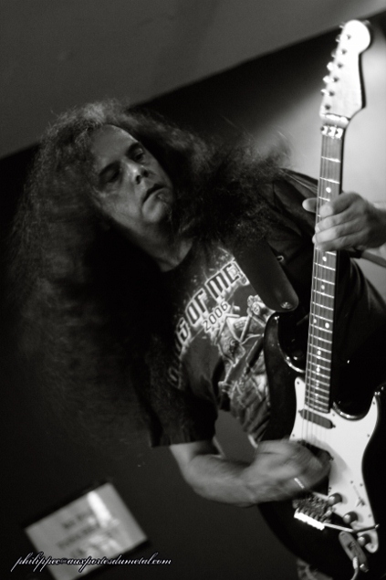 Le set d'HellXHere s'appuie sur les compositions de leur album éponyme sorti en 2011, les musiciens envoient du bon Speed Metal avec des moments forts comme Who Do You Think You Are?, Delivering The Goods ou encore Sin-Drenched Fruit... Mais ils essuient un peu les plâtres car le son n'est pas toujours au rendez-vous : dommage car techniquement, Fred Hamm est un sacré guitariste... Sans faire un procès à l'Altherax : mais vous la changez quand votre table ?! Donc, tant bien que mal, HellXHere est arrivé à nous faire un set plus qu'acceptable... chapeau ! Setlist HellXere : Vows Of Deicide Avec un répertoire oscillant entre Heavy Metal et Thrash, en grands pros, les musiciens de Toxxic Toyz, habitués du public parsemé de l'Atherax, vont continuer à faire monter la salle en température. Le groupe commence par Racing The Clock et Worth Gold tiré de Mutation (2010), un album où apparaissait: "le chanteur/escroc américain David Mc Bee" comme nous l'a dit Arvi Kaint, le guitariste chanteur avec son humour caustique. Toxxic enchaîne avec Bark At The Moon d'Ozzy, puis deux titres de leur répertoire dont le brûlot Broken Mirror qui apparaît sur l'album F.E.A.R (2007). Le son, comme souvent dans cette salle, n'est pas super mais là il est vraiment assourdissant... En plus, Rick Pride, le batteur, utilise son vrai kit et comme il tape comme une brute, on n'entend que lui ; Tomy Bones, le bassiste, n'est pas en reste, ce qui fait que l'on a du mal à entendre les guitares de Fred Burst et Arvi.