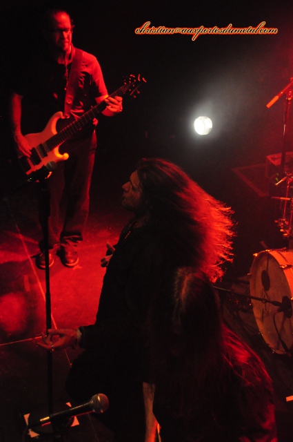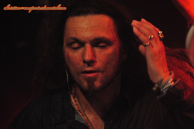Soirée très spéciale ce 31 octobre à Grenoble... Non pas que ce soit Halloween, je n'en ai pas grand chose à faire (!) bien que les allures vestimentaires de mes voisins ne puissent me laisser indifférent... Non pas que ce soit un concert metal hors-pair, j'ai déjà souvent patienté pour profiter du groupe phare d'une soirée mais là, quatre "premières parties", c'est sacrément long... Mais c'est la troisième fois que j'assiste à un set de Vanden Plas et comme ma première fois date de dix-huit ans, j'avoue que c'est un peu ému que je me rends à Grenoble... Comme je le notais dans ma plus récente chronique à leur sujet (voir ici), Vanden Plas a inauguré mon retour aux affaires en matière de metal et près de vingt années plus tard, ma flamme ne s'est pas éteinte : ni pour eux , ni pour la musique... Si tel est le cas, je le dois aussi un peu à une personnalité croisée au détour d'un voyage scolaire en Espagne, bassiste chanteur d'un combo nommé à l'époque Rest In Peace, qui a su me faire découvrir les talents d'Andy Kuntz and co. et il se trouve que justement, parmi les spectateurs ce soir, je reconnais Eric ! Mais je ne m'étendrai pas plus sur ce versant personnel uniquement abordé parce qu'il accentue l'intensité de mon ressenti ce soir... Ce fut donc particulièrement long avant que les Allemands de Kaiserslautern ne prennent possession de la scène... Se sont succédés dans l'ordre : Ossonor, Eltharia, Whispering Tale et Amon Sethis. Mention spéciale à Eltharia qui a su soulever l'enthousiasme des quelques trois cents présents à l'Ampérage avec un hard rock des plus dynamiques... Quand Andy s'empare du micro, on entre assurément dans une autre dimension sonore qu'avec ses prédécesseurs : son chant est toujours aussi profond et maîtrisé (pour mon plus grand plaisir) et n'a pas pris une ride, pas plus que son faciès d'ailleurs... Comme j'ai eu le plaisir d'échanger quelques mots avec Stephan Lill en coulisses, j'ai pu constater que lui non plus n'avait pas changé : toujours très attentif aux réglages (c'est lui qui est allé accorder sa guitare et tester ses amplis avant le show) et concentré sur sa prestation... Ces gars-là sont de véritables pros qui ne se moquent pas de leur public et veillent à donner le meilleur d'eux-mêmes chaque fois qu'ils se produisent et voilà qui est tout à leur honneur ! Ce soir si la lumière laisse un peu à désirer (mes clichés peuvent en témoigner...), le son est lui, particulièrement bon et dès l'entrée en matière, le public peut apprécier la puissance qui se dégage de la scène : aucun instrument n'est lésé et l'ensemble est du plus bel effet ! Comme j'ai bien en tête le dernier album et que le groupe en interprète pas moins de quatre morceaux, je me régale de constater que mon appréciation initiale n'était pas erronée : Vanden Plas atteint avec Chronicles of the Immortals le sommet de sa carrière dans le sens où le passé n'est pas renié, le style demeure mais il est magnifié à la fois par des compositions au feeling inégalé et par une interprétation magistrale ! Quand Andy Kuntz entonne le refrain de la "Vision 2wo" intitulée The Black Knight, la salle vibre et j'avoue que j'ai rarement ressenti une telle émotion en concert : ces Allemands ont le chic pour délivrer des hymnes qui prennent aux tripes ! Le temps passe à une vitesse folle et pourtant Vanden Plas ne bâcle pas : le set dure près d'une heure trente (avec le rappel) à la grande satisfaction de la salle bondée... Mais je ne peux m'empêcher, en me souvenant de l'affluence de leurs premiers concerts en France, de regretter qu'ils se produisent (aujourd'hui qu'ils sont au sommet de leur art) dans cette si petite salle, aussi pleine soit-elle... Y'a vraiment pas de justice ! En tout cas, ceux qui étaient à Grenoble ce soir ont assisté à un évènement exceptionnel !