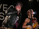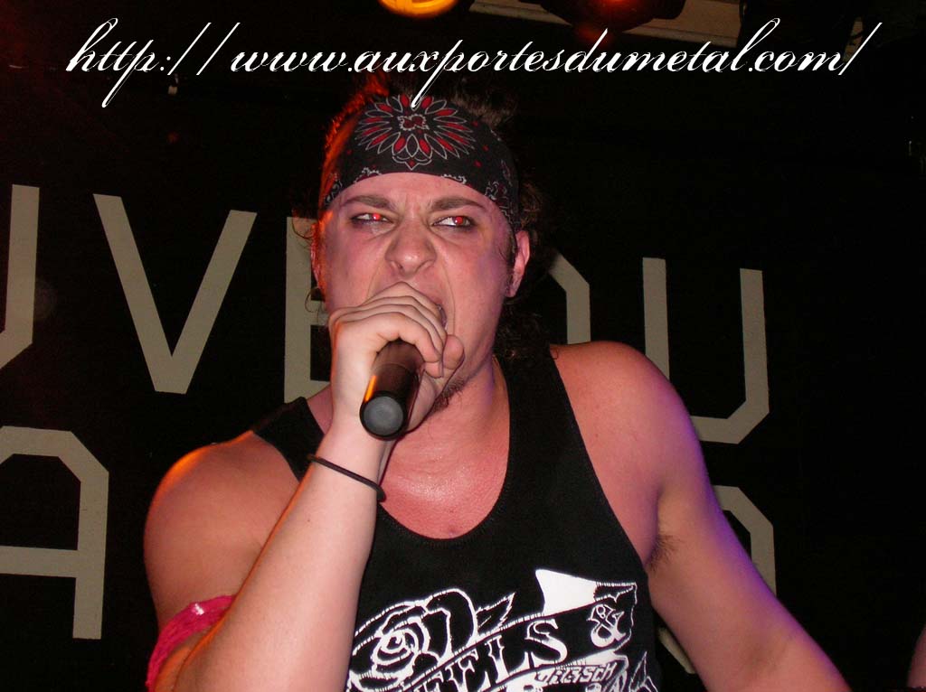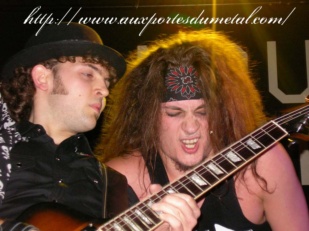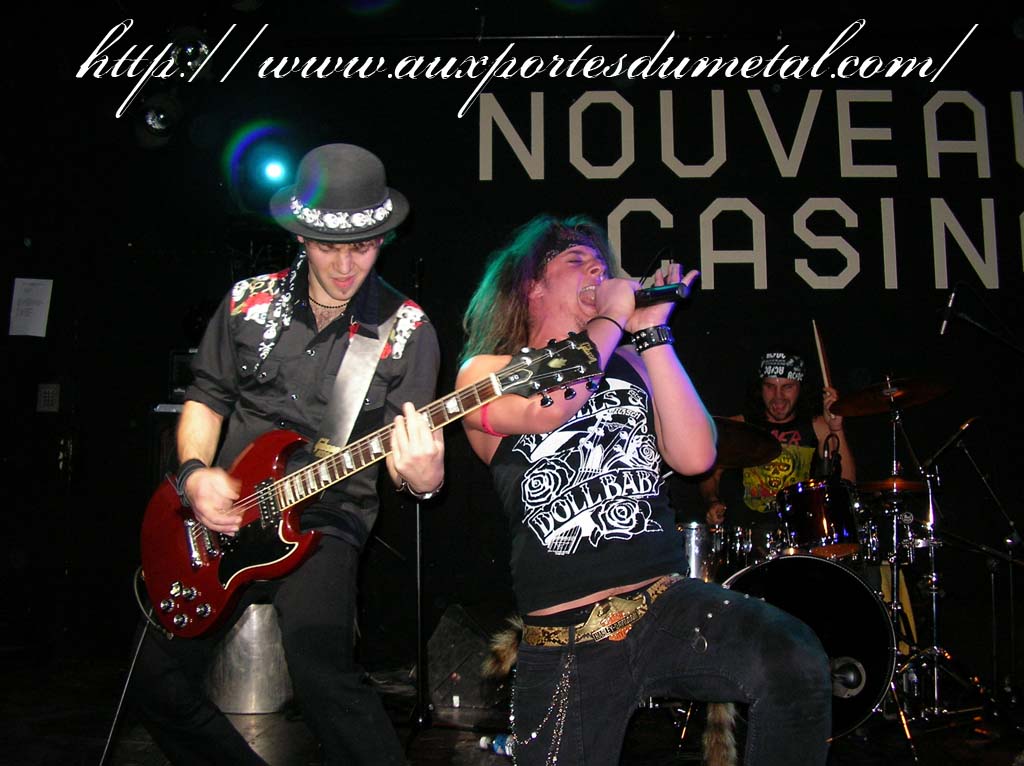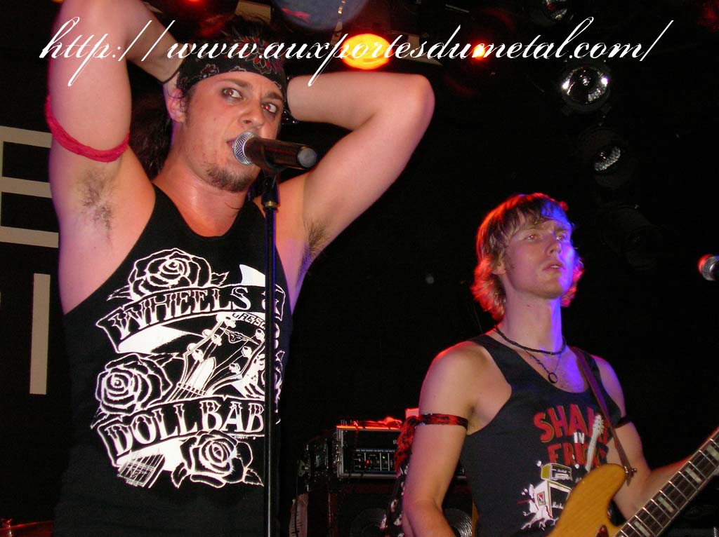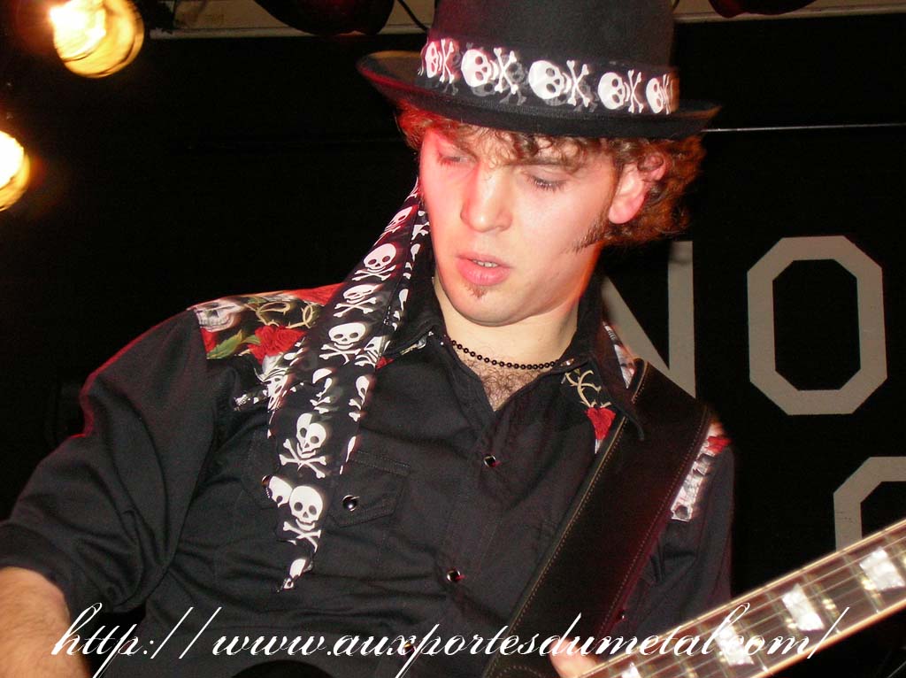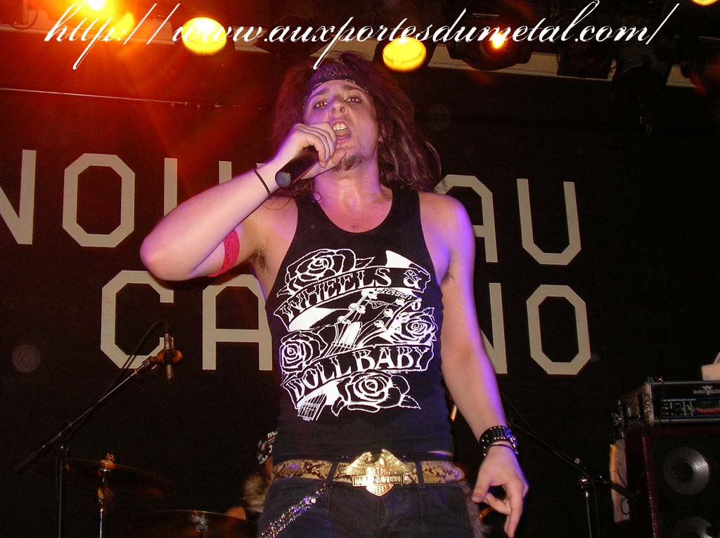 Trente, groupe de rock made in France, ouvre donc le bal avec une musique qui bien qu'elle ne soit pas mauvaise sonne quelque peu aseptisée et formatée par rapport au reste de l'affiche. Il semblerait que Trente ne doive sa présence ce soir là, qu'au fait de faire partie du même label que Koritni. Arrive ensuite Hydrogyn, qui avec son rock US aura vraiment chauffé la salle, à moins que ça ne soit la présence de la charmante Julie derrière le micro, qui ne fasse monter la salle en température. Le coffre de la chanteuse a d'ailleurs de quoi impressionner, et cela dans les deux sens du terme. Le show du groupe est lui made in US : carré, net et sans bavures. Mais il est écrit que la star du soir ne sera pas en corset rouge, car entre en scène Koritni, et comme prévu le groupe va tout simplement enflammer la salle, grâce en particulier à son frontman du même nom. Lex Koritni fidèle à lui-même avec son style 80's inimitable (ben oui une jartelle rouge autour du bras, c'est la classe quand même !) et surtout sa voix exceptionnelle qui ne faiblira pas de tout le set. Chaque morceau s'avère être un moment d'anthologie, l'entrée avec "Starving Fast" qui donne tout de suite le ton, un "Never Say Goodbye" chanté en choeur avec le public. Koritni n'a dieu merci pas oublié les titres de $ Green Dollar Colour $, en interprétant entre autre "Dirty Letter", "Heart Donation", mais surtout un "Mess with Love" dantesque où Lex Koritni empruntera un instant la guitare d'Eddy Santacreu pour interpréter une partie du solo. Mais la part belle du set est bien sur consacrée au dernier album qui sera interprété dans son quasi intégralité, ne manquant à l'appel que la reprise des Beatles. Le set se "termine" sur un "Under the Overpass" dont l'énergie, qui se dégageait de la version studio tient toutes ses promesses, une fois interprétée en live. Le groupe quitte rapidement la scène, jusqu'à ce que rugisse à nouveau la voix de Lex pour une surprise de taille. Koritni a décidé de marquer le coup pour les 20 ans de la sortie du monument des (vrais) Guns'n'Roses "Appetite for Destruction", et c'est donc le riff de "Welcome to the Jungle" qui se fait entendre dans une salle tout simplement en transe. Mais l'hommage aux Guns ne s'arrête pas là, car les titres s'enchaînent "Mr Brownstone", "Sweet Child of Mine", "Paradise City"... Le groupe quitte ensuite la scène pour de bon en laissant les spectateurs à bout de souffle et ébahie par une telle prestation. Quand on sait que Lex Koritni a préféré faire splitter $ Green Dollar Colour $ pour pouvoir chanter ses titres en live, on ne peut que le remercier pour ça. LET THERE BE KORITNI !! |