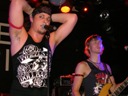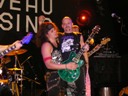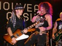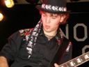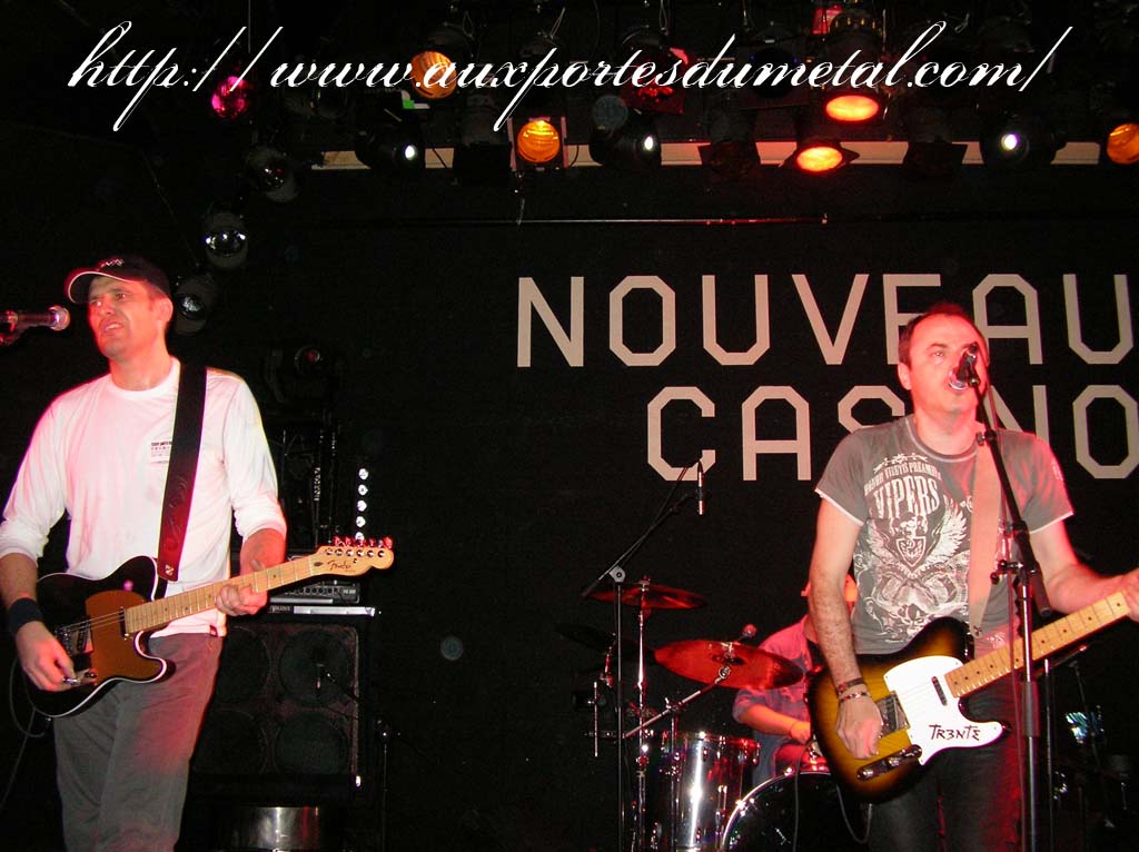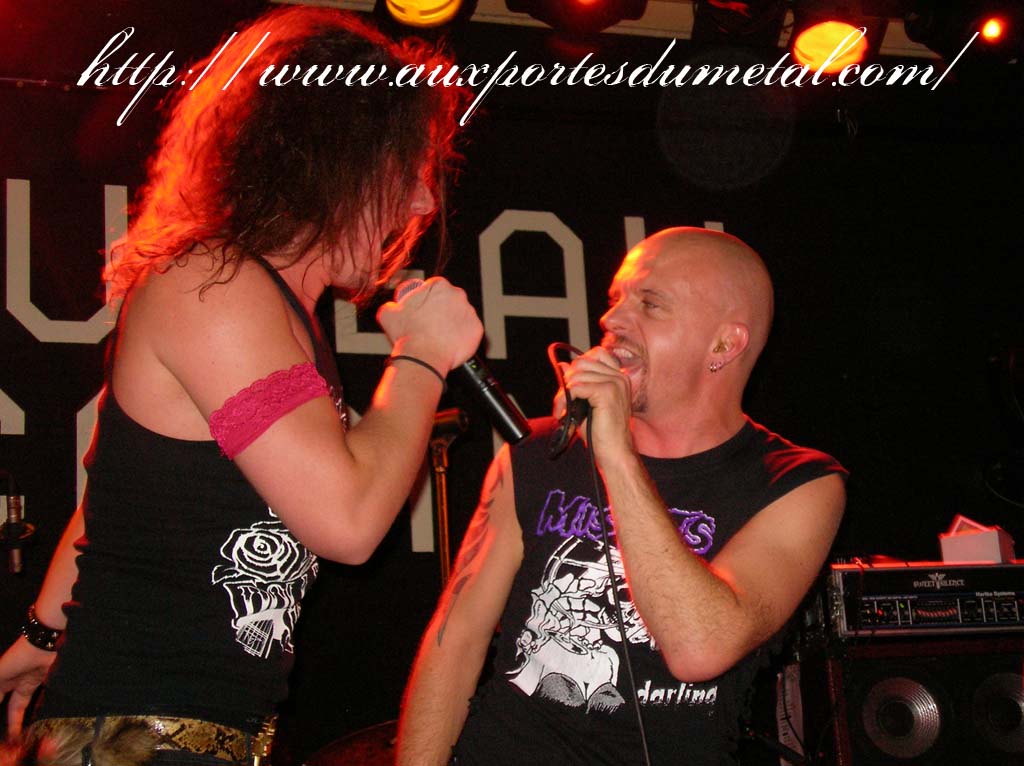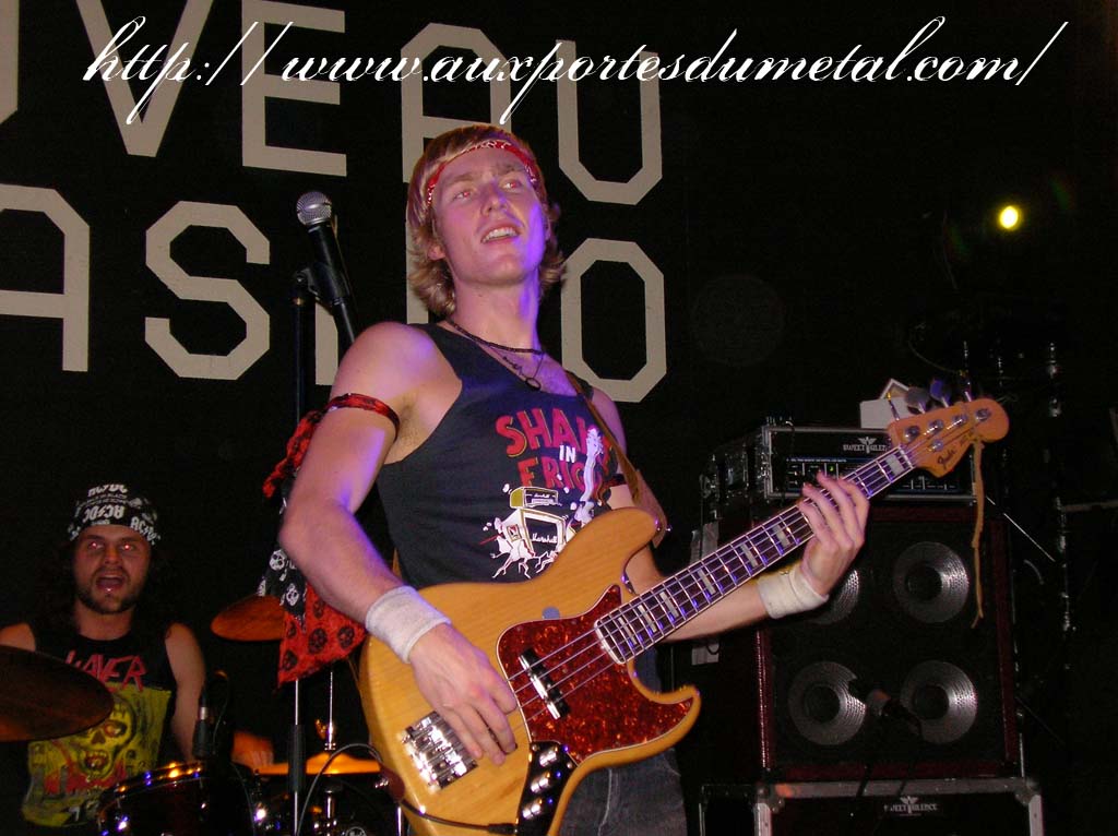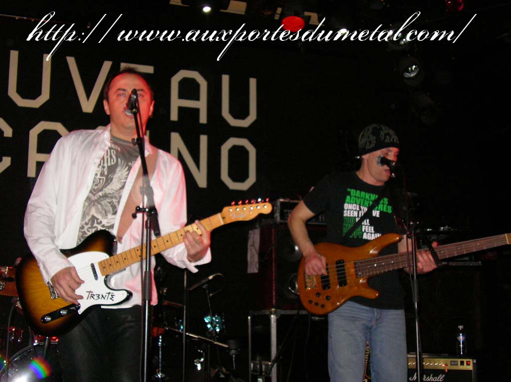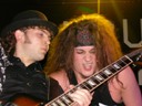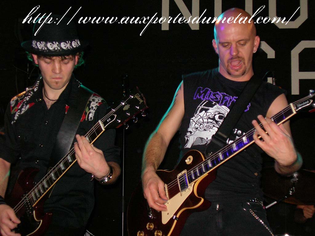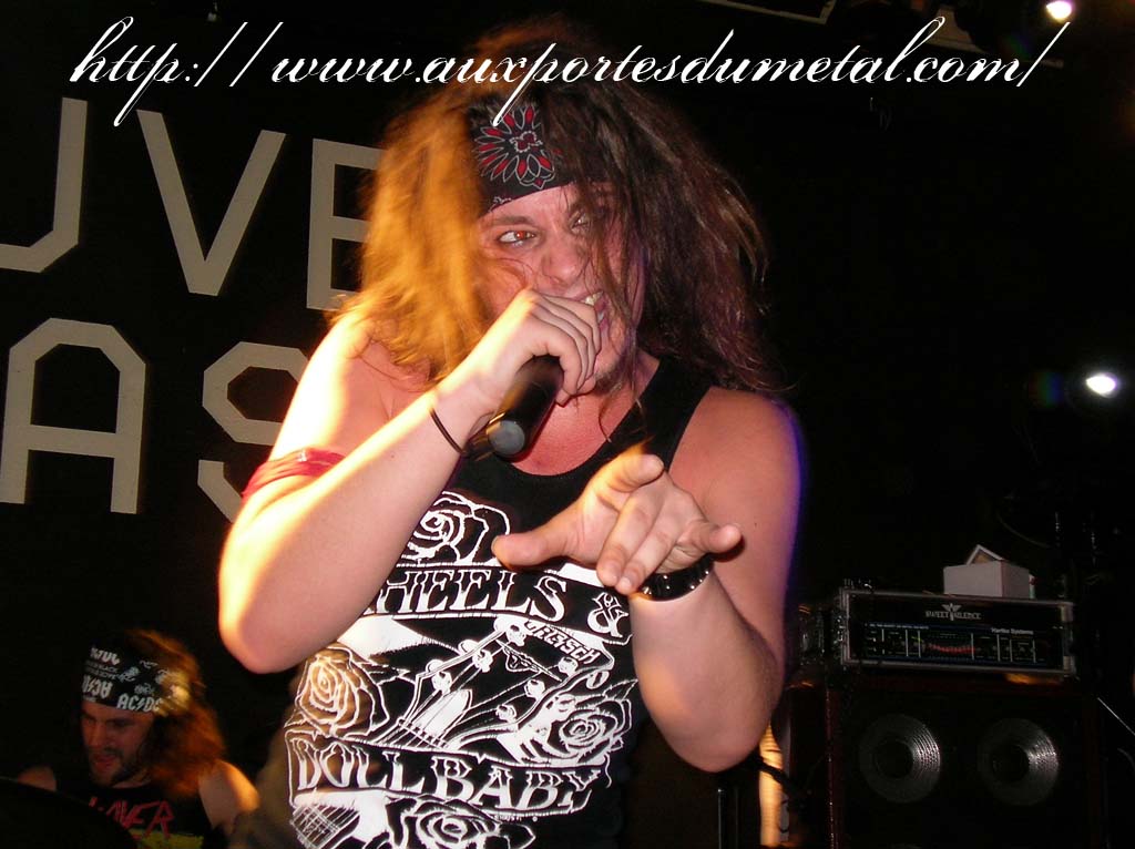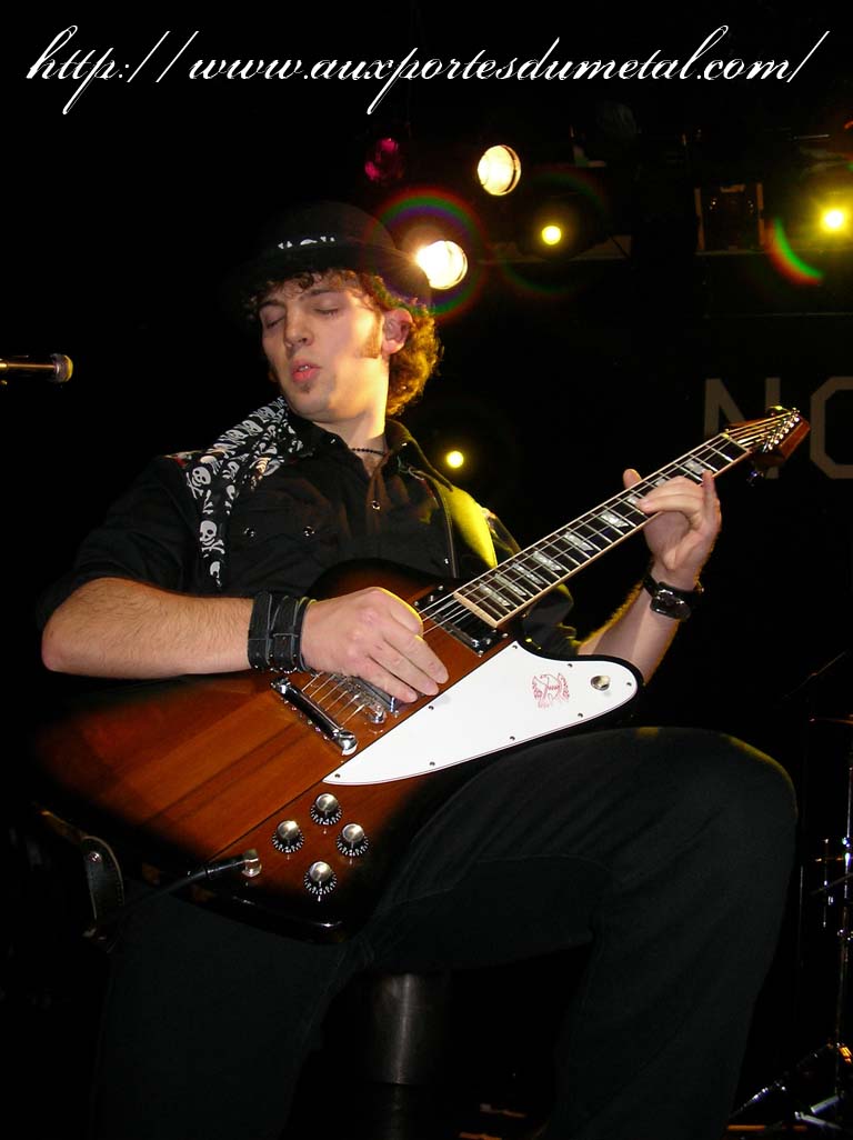 Trente, groupe de rock made in France, ouvre donc le bal avec une musique qui bien qu'elle ne soit pas mauvaise sonne quelque peu aseptisée et formatée par rapport au reste de l'affiche. Il semblerait que Trente ne doive sa présence ce soir là, qu'au fait de faire partie du même label que Koritni. Arrive ensuite Hydrogyn, qui avec son rock US aura vraiment chauffé la salle, à moins que ça ne soit la présence de la charmante Julie derrière le micro, qui ne fasse monter la salle en température. Le coffre de la chanteuse a d'ailleurs de quoi impressionner, et cela dans les deux sens du terme. Le show du groupe est lui made in US : carré, net et sans bavures. Mais il est écrit que la star du soir ne sera pas en corset rouge, car entre en scène Koritni, et comme prévu le groupe va tout simplement enflammer la salle, grâce en particulier à son frontman du même nom. Lex Koritni fidèle à lui-même avec son style 80's inimitable (ben oui une jartelle rouge autour du bras, c'est la classe quand même !) et surtout sa voix exceptionnelle qui ne faiblira pas de tout le set. Chaque morceau s'avère être un moment d'anthologie, l'entrée avec "Starving Fast" qui donne tout de suite le ton, un "Never Say Goodbye" chanté en choeur avec le public. Koritni n'a dieu merci pas oublié les titres de $ Green Dollar Colour $, en interprétant entre autre "Dirty Letter", "Heart Donation", mais surtout un "Mess with Love" dantesque où Lex Koritni empruntera un instant la guitare d'Eddy Santacreu pour interpréter une partie du solo. Mais la part belle du set est bien sur consacrée au dernier album qui sera interprété dans son quasi intégralité, ne manquant à l'appel que la reprise des Beatles. Le set se "termine" sur un "Under the Overpass" dont l'énergie, qui se dégageait de la version studio tient toutes ses promesses, une fois interprétée en live. Le groupe quitte rapidement la scène, jusqu'à ce que rugisse à nouveau la voix de Lex pour une surprise de taille. Koritni a décidé de marquer le coup pour les 20 ans de la sortie du monument des (vrais) Guns'n'Roses "Appetite for Destruction", et c'est donc le riff de "Welcome to the Jungle" qui se fait entendre dans une salle tout simplement en transe. Mais l'hommage aux Guns ne s'arrête pas là, car les titres s'enchaînent "Mr Brownstone", "Sweet Child of Mine", "Paradise City"... Le groupe quitte ensuite la scène pour de bon en laissant les spectateurs à bout de souffle et ébahie par une telle prestation. Quand on sait que Lex Koritni a préféré faire splitter $ Green Dollar Colour $ pour pouvoir chanter ses titres en live, on ne peut que le remercier pour ça. LET THERE BE KORITNI !! |