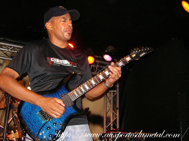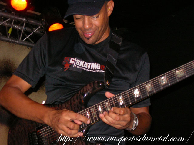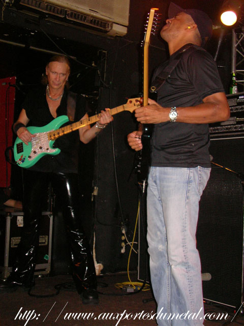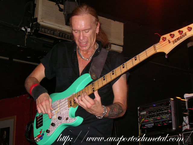 L I V E R E P O R TLe "Devil's Slingshot Tour" est de passage dans nos contrées européennes. Le trio de choc Tony MacAlpine à la guitare, Billy Sheehan à la basse et Virgil Donati à la batterie est de passage en ce soir du 7 Septembre 2006 au New Morning. 2 heures avant l'ouverture des portes le public commence à faire la queue afin de bénéficier des meilleurs places. Un public très hétérogène dont l'âge s'étend de 16 à 55 ans ! A entendre les discussions de couloir, il semblerait que les plus jeunes soient venus uniquement pour assister aux démonstrations du batteur-hero Virgil Donati, les plus âgés ayant apporté toutes leurs pochettes de CD de Tony MacAlpine espérant une dédicace. Alors que certains misaient sur un public de 80 personnes, c'est un New Morning rempli comme un oeuf qui est venu voir ce Devil's Slingshot Tour, pourtant si peu médiatisé. Les portes s'ouvrent donc à 20h, et c'est après une heure que l'introduction symphonique et épique retentit. Une intro digne d'un Rhapsody Of Fire qui dure 10 minutes avant que les 3 virtuoses envahissent la scène. C'est alors parti pour 1h20 d'ultra-technique. Tony MacAlpine est bien sur le leader et ce concert s'organise essentiellement autour des thèmes néo-métal de Tony. Tony nous balance une sorte de best-of de sa carrière, après tout il est un peu là pour promouvoir son album "Collection - The Shrapnel Years", disponible jusqu'ici uniquement en import. Tout y passe : les morceaux imparables d'"Edge Of Insanity", de "Chromaticity" etc ... Disposant d'un toucher de folie, expert du vibrato mélodique et dieu du sweeping couplé au tapping, Tony excelle. Force est de constater pourtant que Tony semble timide et très introverti, ne regardant pour ainsi dire jamais le public, contrairement à Billy Sheehan ultra-communicatif et démonstratif de ses prouesses techniques. Au cours de ce concert, Billy et Virgil auront l'occasion de s'exprimer via leurs différents solos à couper le souffle. Depuis Mike Terrana, je n'avais pas vu un tel solo de batterie ! Pour résumer, cela faisait si longtemps que Tony Macalpine n'était pas venu en France pour jouer ses propres compos néo-classiques que nous nous sommes pris une grande claque. En plus, la section rythmique était assurée par les meilleurs. S'il fallait faire 2 reproches à cette soirée, ce serait d'une part que le volume de la guitare de Tony était peut-être sous-mixé par rapport à la batterie et d'autre part que ce concert était peut-être trop conçu pour un public musicien, que ce soit guitariste, bassiste ou batteur. Je doute qu'un simple métalleux ne se soit pas ennuyé devant tant de prouesses techniques. Sinon, les gars vous revenez quand ? Et surtout Tony, à quand ton prochain album ? |