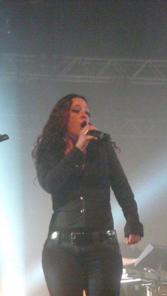 Vient ensuite le tour de Flowing Tears : le dernier album du groupe m'avait un peu refroidie et c'est avec un certain détachement que j'ai suivi leur set qui pourtant n'avait pas l'air si mal. Effectivement, la chanteuse et sa voix particulière m'ont plus séduite, tout comme la musique. La jeune femme occupe la scène, parle avec le public et montre véritablement qu'elle apprécie d'être sur scène. Ses grunts sont toujours un peu rebutants pour moi, mais dans l'ensemble, ils me dérangent moins que sur l'album. La musique se fait agréable, mais ne connaissant pas assez les compositions du groupe, je ne peux dire si les morceaux sont bien joués, fidèles ou non à l'album, ni même si Helen Vogt donne un nouveau souffle aux anciennes chansons chantées par Stéphanie Duchêne ou si au contraire, elle ne les embellie pas. Quoiqu'il en soit, ce que j'ai entendu m'a plus convaincu que ce que j'avais entendu enregistré en studio.