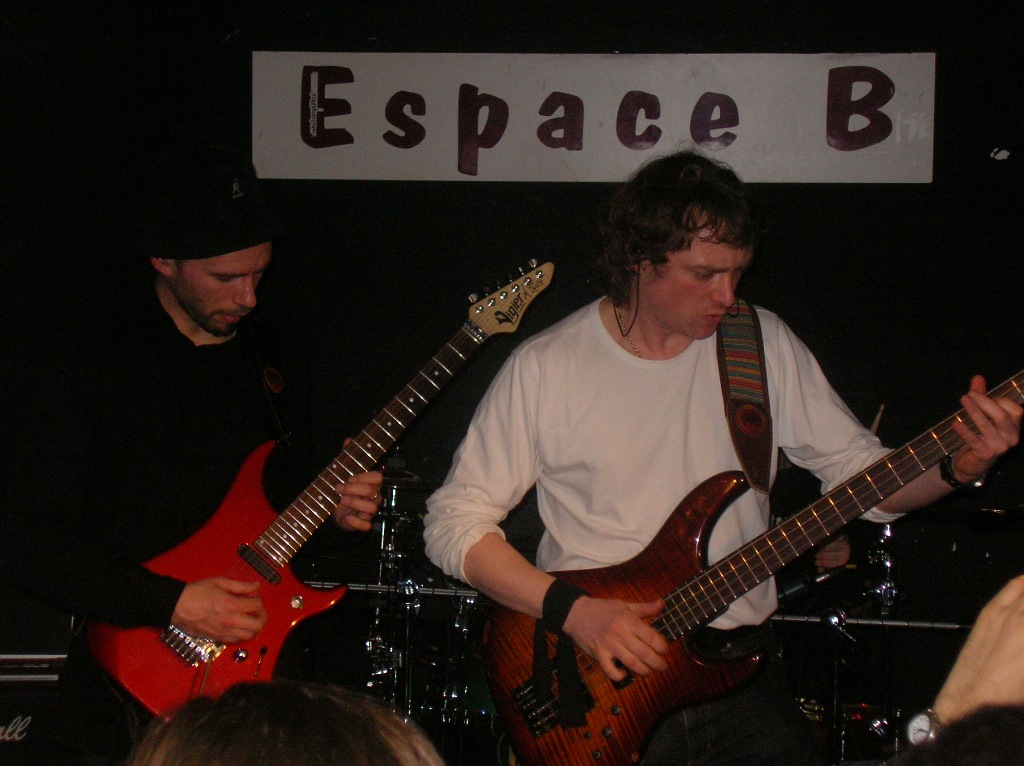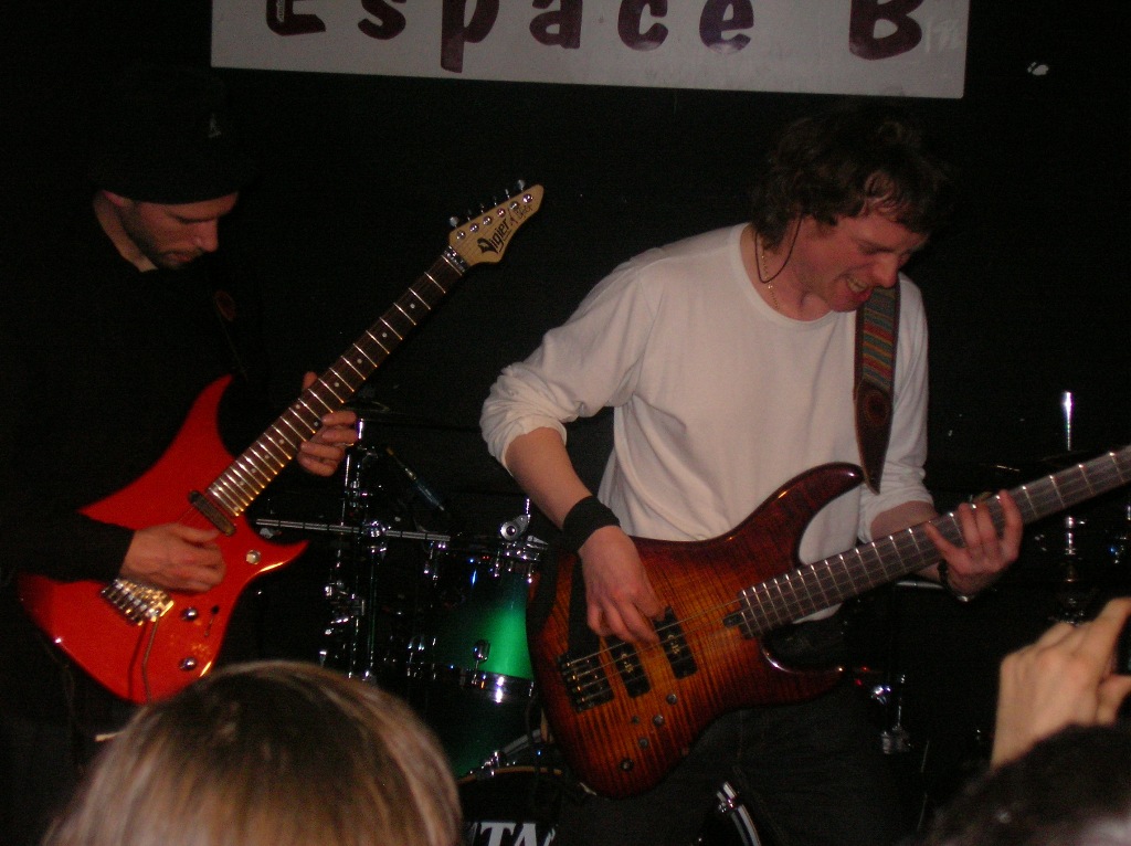 Le hard instrumental français a un bel avenir devant lui... rien de tel qu'un concert de Triple FX pour le prouver ! Rendez-vous donc le Vendredi 2 Février 2008 à l'Espace B dans le 19ème arrondissement pour une tournée visant à promouvoir le nouvel album du trio sobrement intitulé "II" dont la sortie dans les bacs est imminente. Après une petite frayeur à la vue du bar-restau ressemblant plus à un PMU pour amateurs de pastis qu'à une salle de concert pour métalleux, nous voici rassurés, c'est bien ici, la salle de concert est au fond, il faut juste traverser le restau ! Malgré une promo néante, une cinquantaine de personnes a fait le déplacement et dans le public, on croise du beau monde : Patrick Rondat, Youri De Groote... 21h30, c'est parti ! Le trio infernal Pascal Vigné, Pascal Mulot, Gaël Féret prend possession de la scène. Rien à dire, le son est super propre, techniquement tout est parfait, les Pascaux sont monstrueux ! Au niveau set-list, nous avons eu droit à la (quasi ?)-intégralité du nouvel album "II" au style instrumental très Dixie Dregs, au satrianien "Fishbones In The Tank" extrait du premier album "Extremely Instrumental" et à 3 reprises : 2 du maître Joe Satriani et 1 de John Petrucci. Même si dans l'ensemble les morceaux live étaient très proches des versions albums, les virtuoses se sont déchainés sur le délirant "One Legged Chicken", Pascal Mulot démontrant que depuis "Bass & Love", il n'avait rien perdu de sa technique de slap. Un excellent concert de génie de plus d'1h30, le tout pour 8 euros, voilà qui devrait faire réfléchir pas mal de promoteurs... Dommage que si peu de monde ait fait le déplacement, mais rassurez-vous : |
